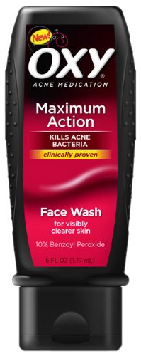 10% Benzoyl peroxide acne medication. Aggressively treats and helps prevent pimples. Oxy Maximum Daily Wash cleans deep into the pores and releases active oxygen to eliminate most acne-causing bacteria and help prevent future breakouts.Oxy Maximum Action Face Wash 6 Fl-Ounce 177 ml Pack 4 Feature